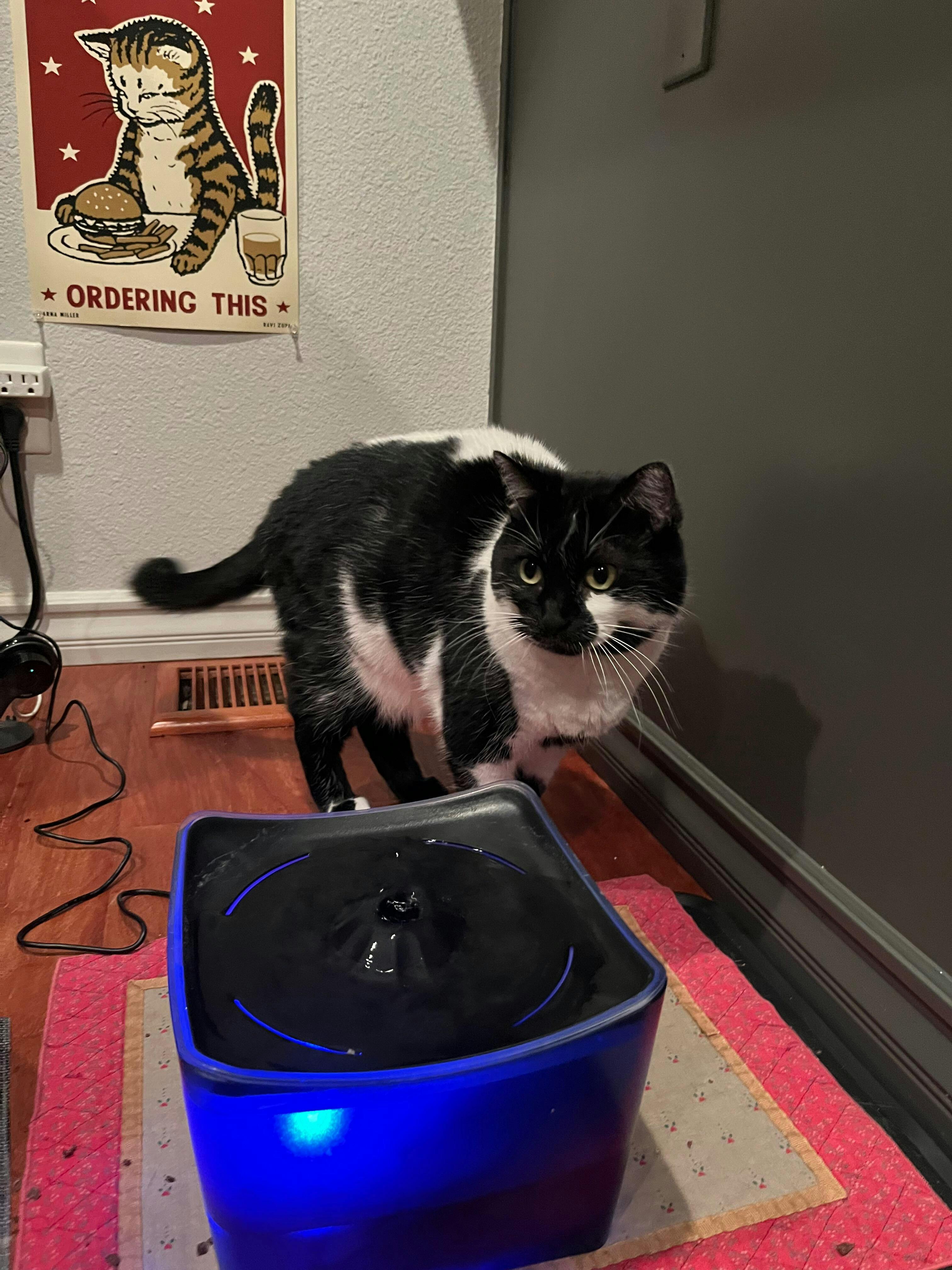 - BPA-free material is safe for pets, while the filtration system with an upgraded carbon layer helps trap hair and food debris while eliminating bad odours and tastes. Cleaning the fountain is easy with the included brush.